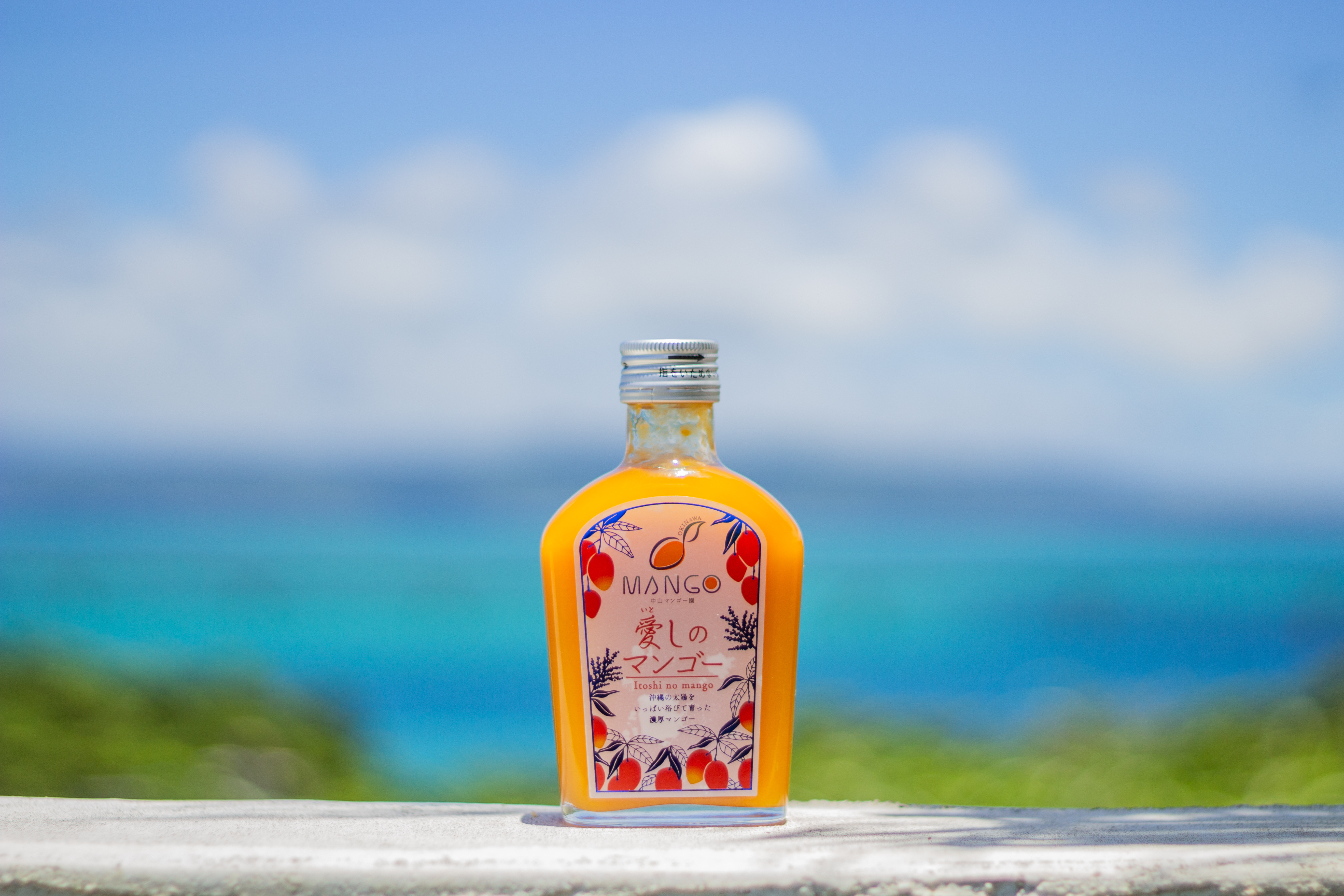 88%以上沖縄県産マンゴーを使用しできるだけシンプルな成分で製造しました。廃棄されるマンゴーをなくしたい、そんな想いからできた商品になります。ラベルには本来共存することのない“花”と“実”をあしらい、色味でもマンゴーの綺麗なオレンジ色を感じてもらえるようにこだわりました。これ一つでマンゴーの全てを感じてもらえる一品となります。