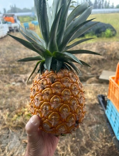 国産パインアップルは沖縄本島北部、八重山地方でしか栽培されない貴重な果物です。また植え付けから収穫まで2~3年かかります。この時期のパインアップルは酸味が強いですがお菓子や酵素ジュースにするには最適です。酸味が好きな方にもこの時期のパインがおススメです。