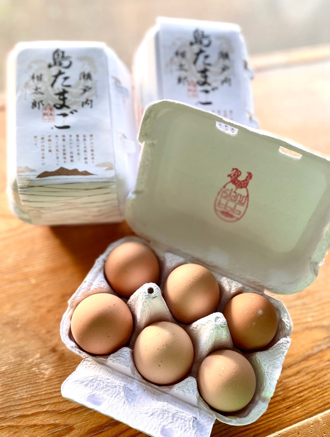 日本でも6%しかいないと言われる純国産鶏の中でも高級な「コーチン種」。「青みかん」などの柑橘のほかに「自然塩」「ひじき」など瀬戸内だからこその特徴ある飼料を食べさせています。毎日、庭でしっかりと遊べるようにと「平飼い」を行い、雄雌ともに暮らすため「有精卵」となっています。 コーチン種は若干小ぶりの卵ですが、殻は固く白身もしっかりとしており、黄身は甘みのある味の濃い商品となっています。