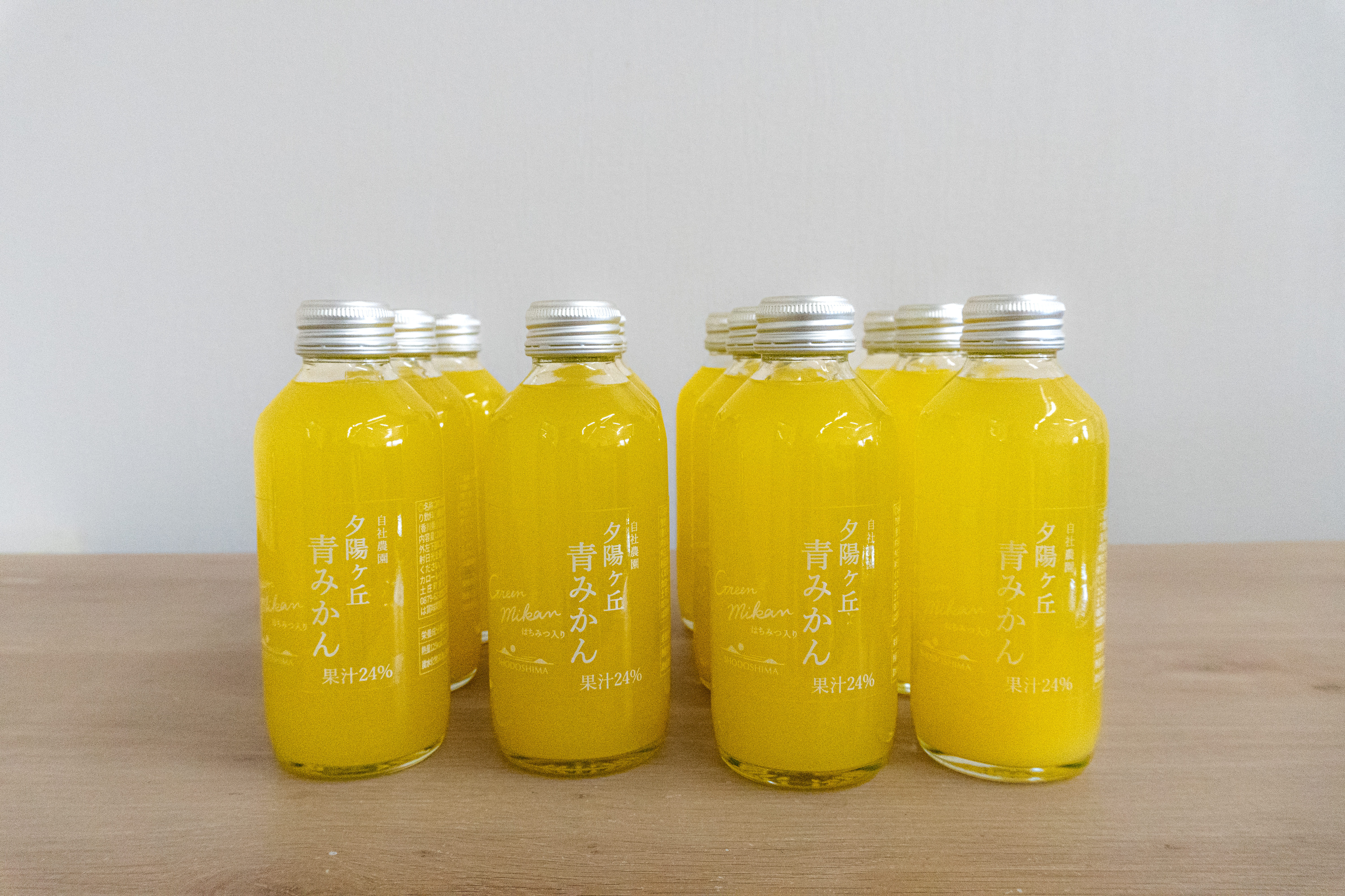 自社のみかん園で間引かれた青いみかんの果汁とはちみつのみで作ったさわやかな飲料です。