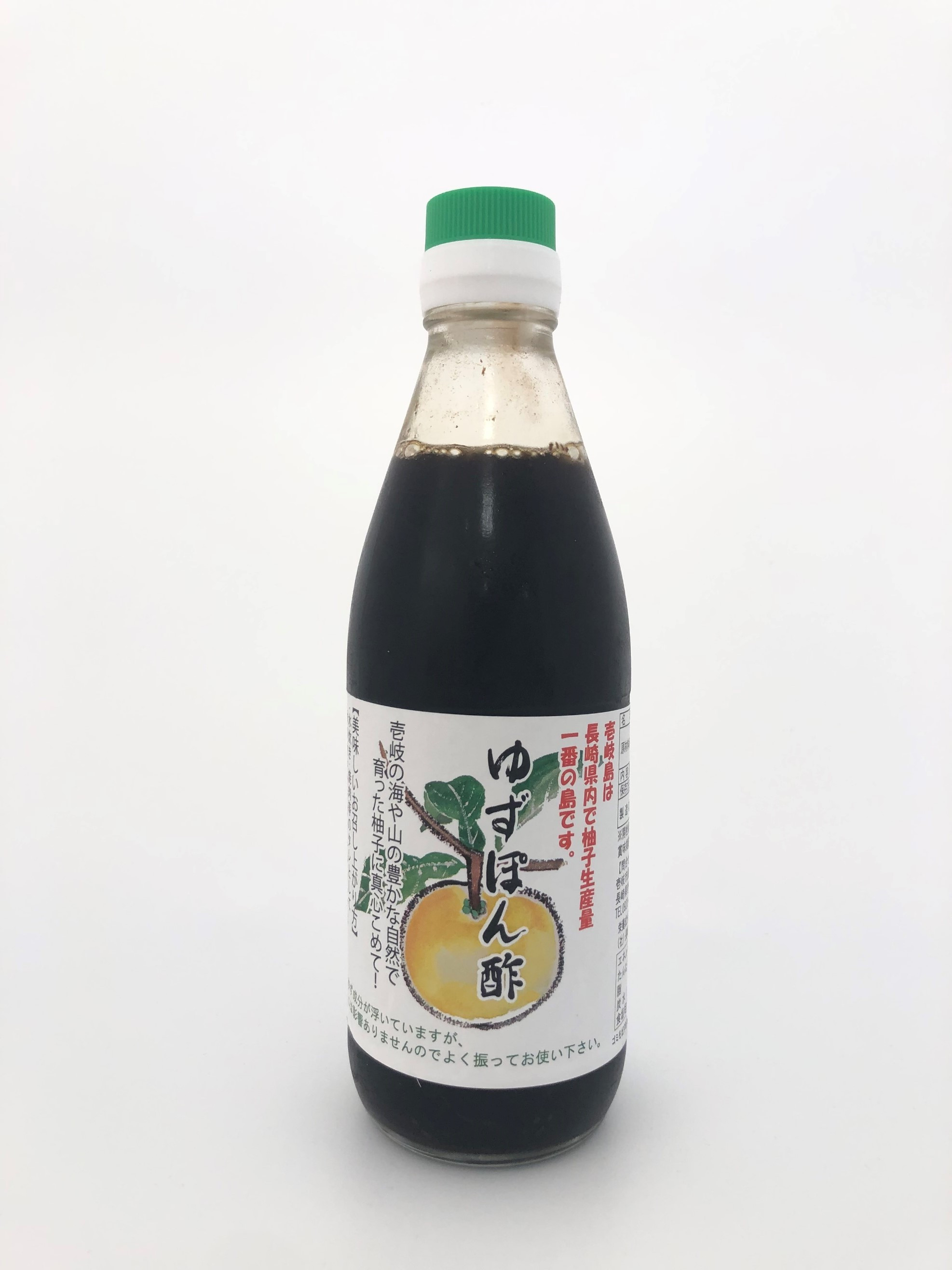 主原料となる柚子は全て長崎県の離島「壱岐」にて栽培・収穫されたものを使用しています。傷等を丁寧に取り除いた果実を丸ごと絞り果汁に醤油、砂糖、みりん、だし、酒を加えて製造しています。壱岐産柚子の香りをお楽しみください。